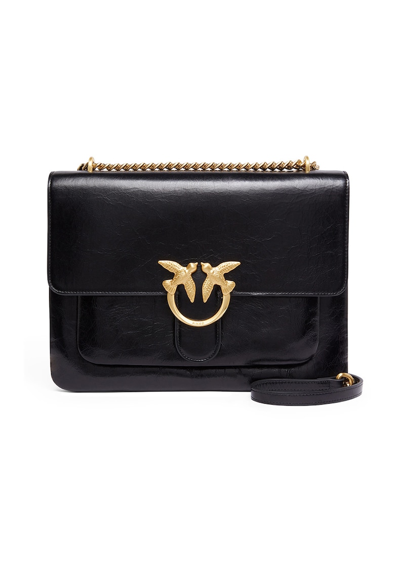 Caracteristici Culoare: negru Material: piele naturala Model: crossbody Stil: casual Imprimeu: uni Barete: unul din lant Compartimente: 3 Culoare elemente metalice: auriu Sistem inchidere: capse