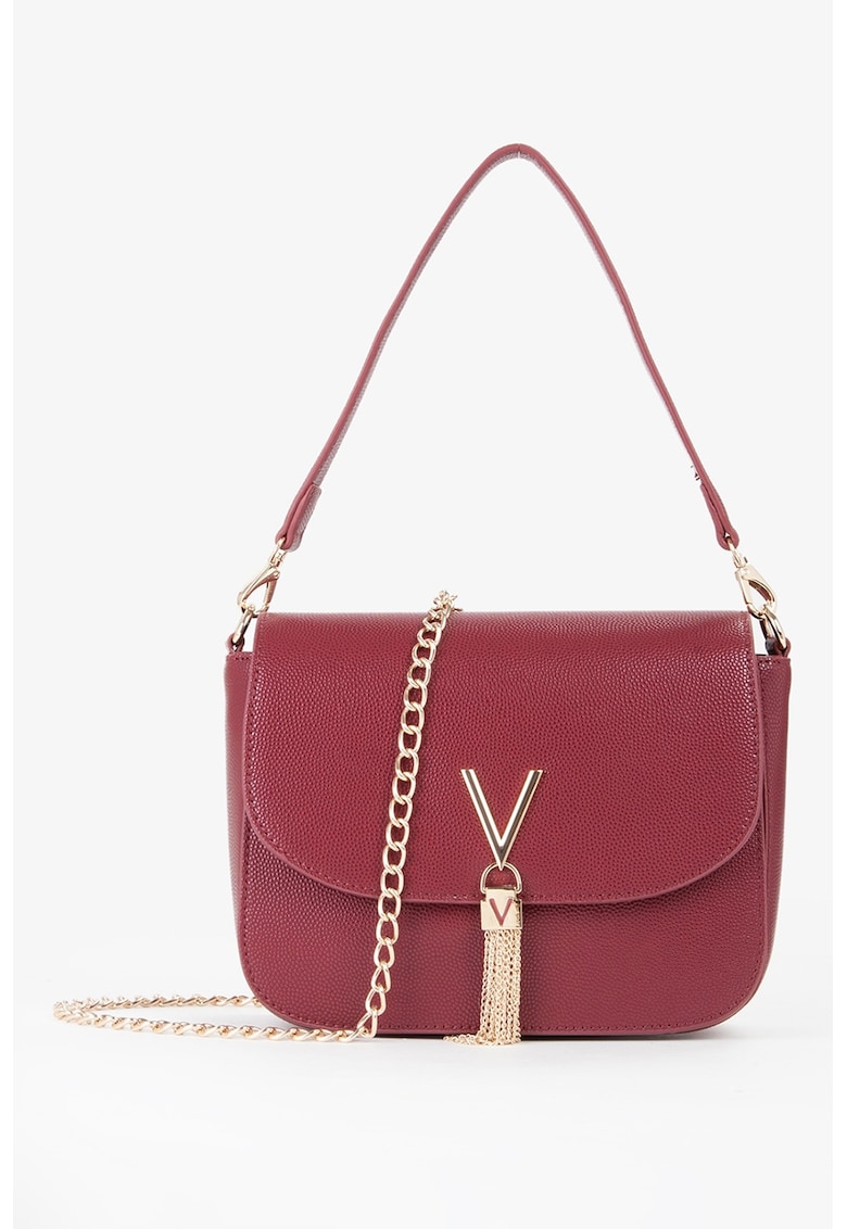 Caracteristici Culoare: visiniu Material: piele ecologica Model: crossbody Stil: casual Imprimeu: uni Maner: detasabil Barete: ajustabile si detasabile Compartimente: 1 compartiment principal Culoare elemente metalice: auriu Sistem inchidere: capse Compozitie Exterior: 100% poliuretan Dimensiuni Dimensiune (cm): 17x23x8