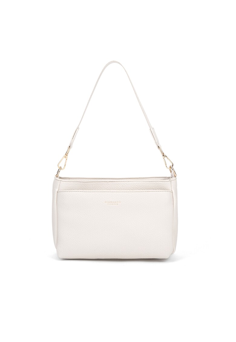 Caracteristici Culoare: bej Material: piele ecologica Model: crossbody Stil: casual Imprimeu: logo Maner: 1 detasabil Barete: 1 ajustabila si detasabila Buzunare: 1 interior
