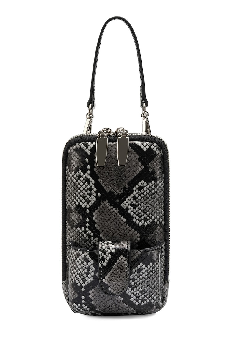 - gri Material: piele naturala Model: crossbody Stil: casual Imprimeu: cu model Barete: ajustabile Culoare elemente metalice: argintiu Sistem inchidere: fermoar Compozitie Exterior: piele Dimensiuni Dimensiune (cm): 17x10x2