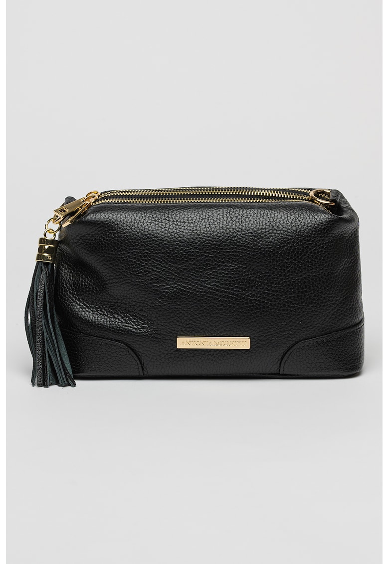 Caracteristici Culoare: negru Material: piele naturala Model: crossbody Stil: casual Imprimeu: uni Barete: ajustabile