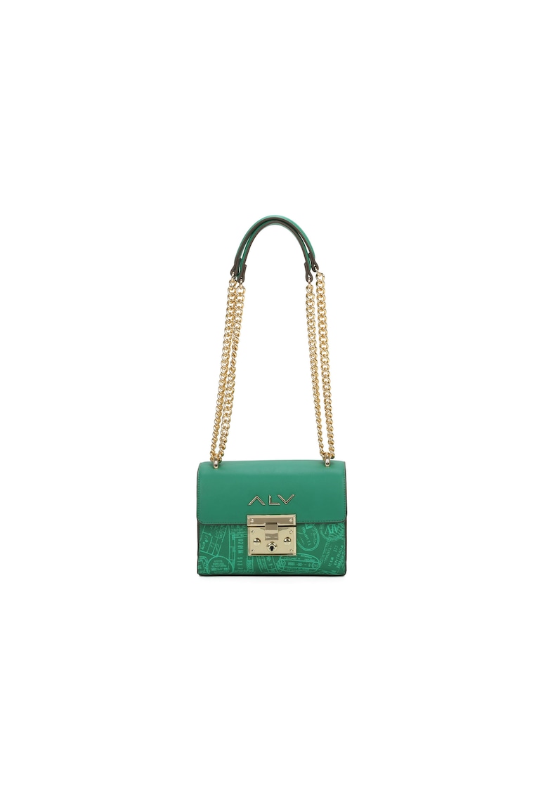 Caracteristici Culoare: verde Material: piele ecologica Model: crossbody Stil: casual Imprimeu: cu model Barete: bareta ajustabila din lant cu protectie pentru umar Buzunare: interior Compartimente: unul Culoare elemente metalice: auriu Sistem inchidere: sistem metalic