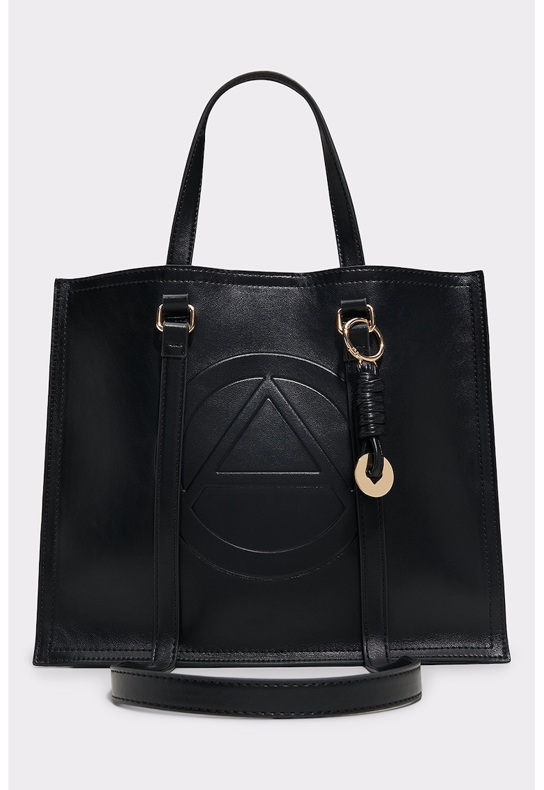 Caracteristici Culoare: negru Material: piele ecologica Model: crossbody Stil: casual Imprimeu: logo Maner: 2 fixe Barete: 2 fixe Buzunare: 1 etui detasabil Compartimente: un compartiment Culoare elemente metalice: auriu Sistem inchidere: capse magnetice Compozitie Exterior: 100% poliuretan Dimensiuni Dimensiune (cm): 33x45x13
