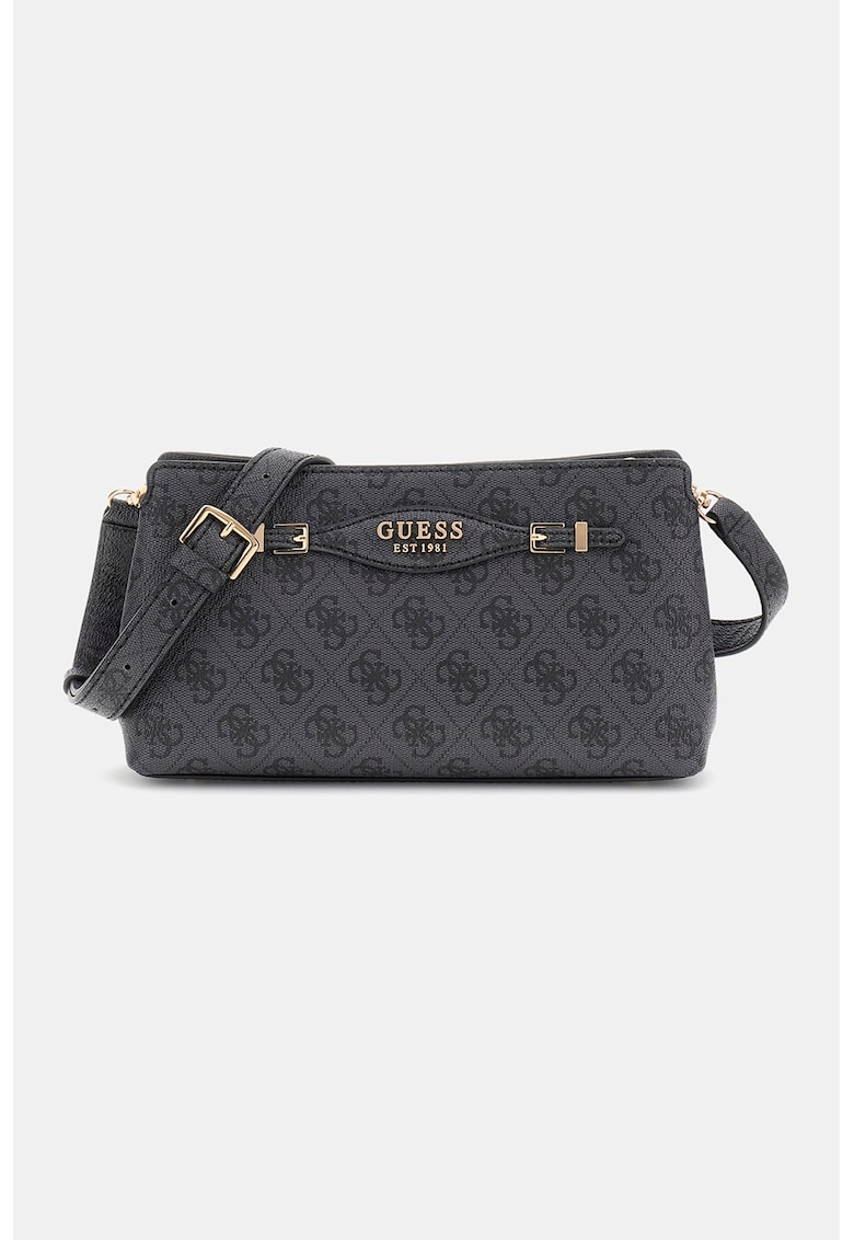 Caracteristici Culoare: gri inchis Material: piele ecologica Model: crossbody Stil: casual Imprimeu: logo Barete: una detasabila si ajustabila Buzunare: buzunar separator cu fermoar Compartimente: 2 Culoare elemente metalice: auriu Sistem inchidere: capse magnetice Detalii: picioruse metalice Compozitie Exterior: 100% poliuretan Dimensiuni Dimensiune (cm): 13 x 23 x 7 cm