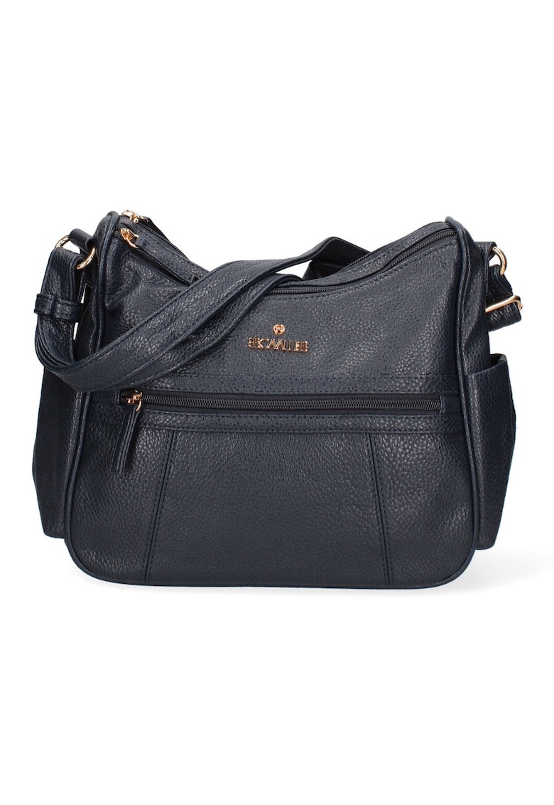 Caracteristici Culoare: albastru inchis Material: piele ecologica Model: crossbody Stil: casual Imprimeu: uni Barete: 1 ajustabila Buzunare: 2 exterioare cu fermoar Compartimente: 2 Culoare elemente metalice: auriu Sistem inchidere: fermoar Compozitie Exterior: material sintetic Captuseala: polyester Dimensiuni Dimensiune (cm): 24 x 28 x 11 cm