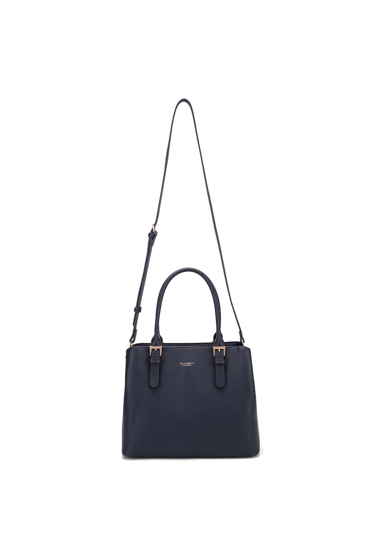 Caracteristici Culoare: albastru inchis Material: piele ecologica Model: de mana Stil: casual Imprimeu: uni Maner: 2 tubulare Barete: una detasabila si ajustabila Compartimente: 3 Culoare elemente metalice: auriu Sistem inchidere: fermoar