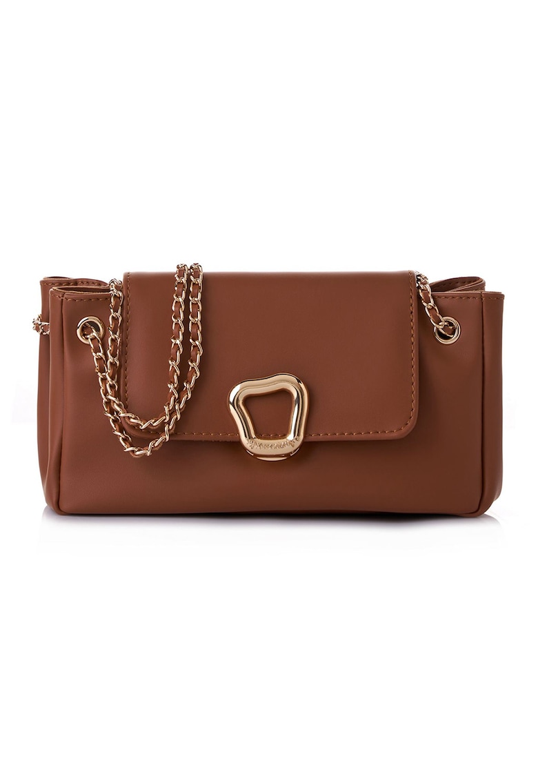 Caracteristici Culoare: maro scortisoara Material: piele ecologica Model: de umar Stil: casual Imprimeu: uni Barete: lant Buzunare: 1 interior Compartimente: 1 Culoare elemente metalice: auriu Sistem inchidere: sistem metalic