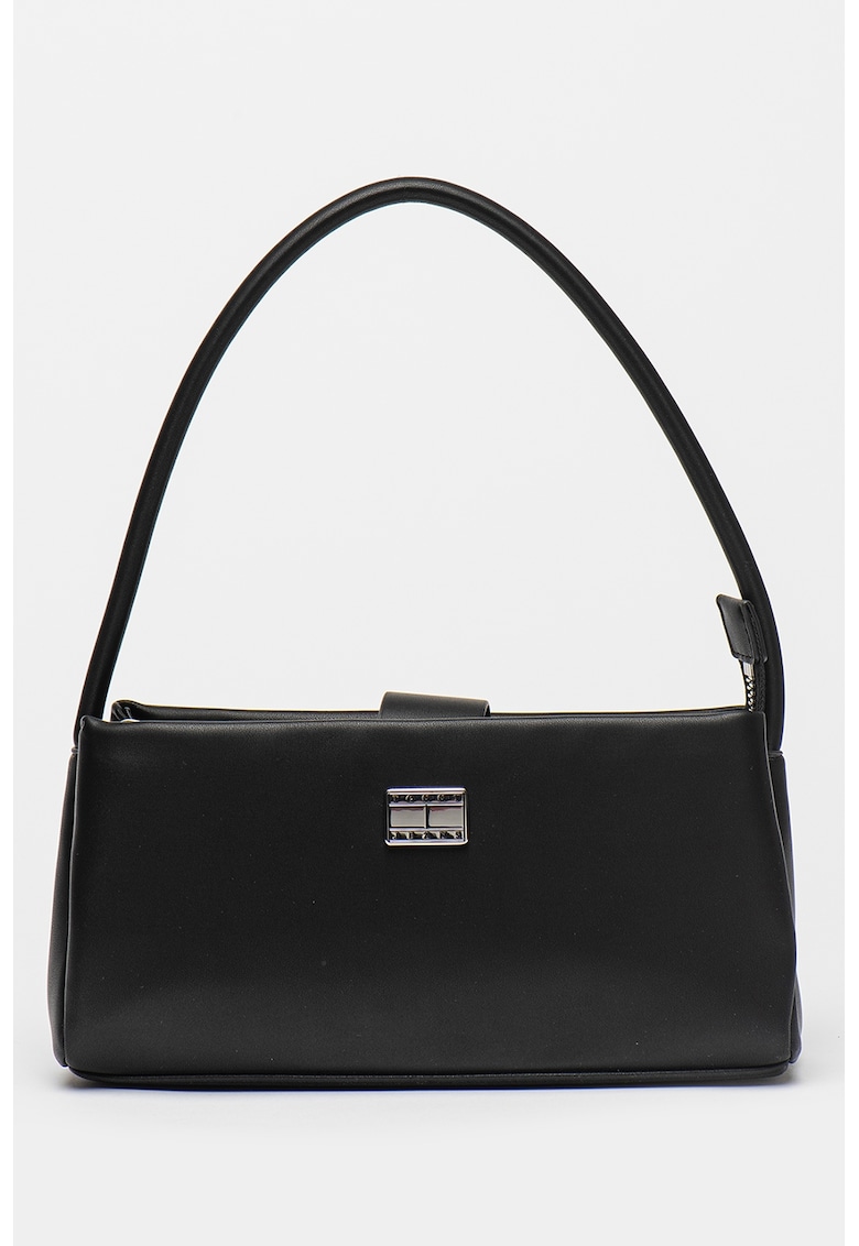 Caracteristici Culoare: negru Material: piele ecologica Model: de umar Stil: casual Imprimeu: uni Maner: 1 fix Compartimente: 1 compatiment principal Culoare elemente metalice: argintiu Sistem inchidere: sistem metalic Compozitie Exterior: 100% poliuretan Dimensiuni Dimensiune (cm): 9x13x8
