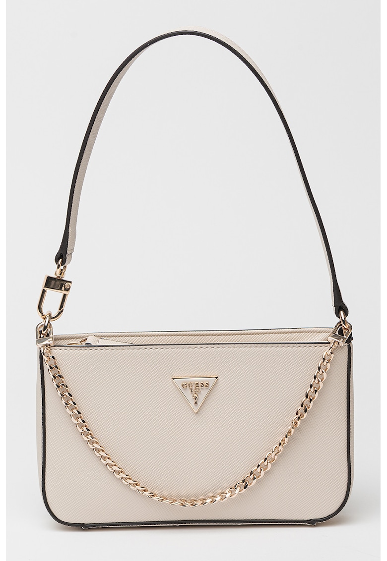 Caracteristici Culoare: alb fildes Material: piele ecologica Model: de umar Stil: casual Imprimeu: logo Compartimente: 1 principal Culoare elemente metalice: auriu Sistem inchidere: fermoar Compozitie Exterior: 100% poliuretan Dimensiuni Dimensiune (cm): 13x22x4