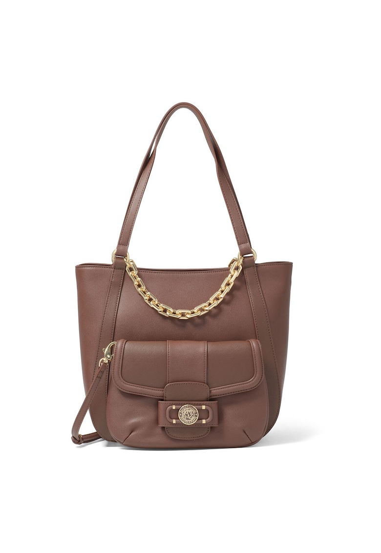 Caracteristici Culoare: maro Material: piele ecologica Model: de umar Stil: casual Imprimeu: uni Maner: 2 fixe Barete: lant Compartimente: unul principal Culoare elemente metalice: auriu Detalii: etui detasabil Compozitie Exterior: poliuretan