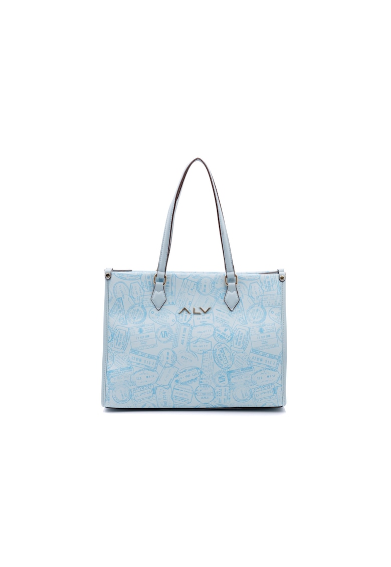 Caracteristici Culoare: albastru deschis Material: piele ecologica Model: de umar Stil: casual Imprimeu: cu model