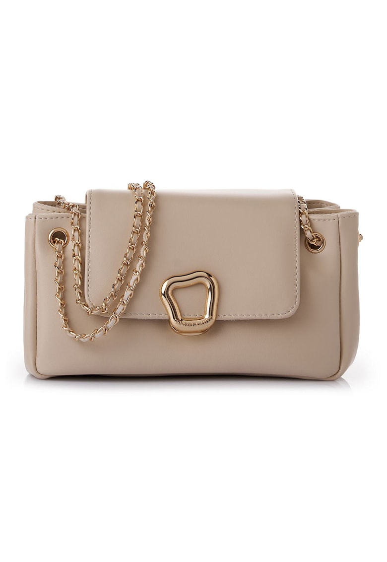 Caracteristici Culoare: bej Material: piele ecologica Model: de umar Stil: casual Imprimeu: uni Barete: lant Buzunare: 1 interior Compartimente: 1 Culoare elemente metalice: auriu Sistem inchidere: sistem metalic