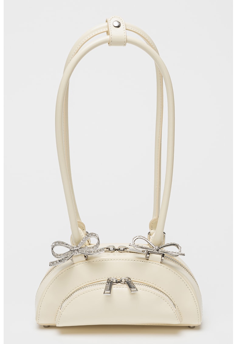 Caracteristici Culoare: crem Material: piele naturala Model: de umar Stil: casual Imprimeu: uni Barete: 2 fixe Buzunare: interior Culoare elemente metalice: argintiu Sistem inchidere: fermoar Detalii: picioruse metalice