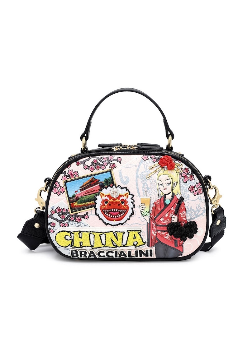 - poliuretan Model: de mana Stil: casual Imprimeu: cu model Maner: unul fix Barete: 1 ajustabila Compartimente: 1 compatiment principal Culoare elemente metalice: auriu Sistem inchidere: fermoar Compozitie Exterior: poliuretan