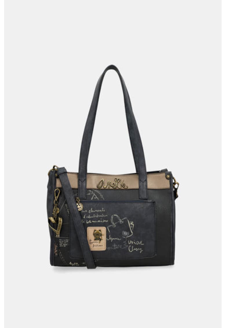 Caracteristici Culoare: negru Material: piele ecologica Model: de umar Stil: casual Imprimeu: cu model Barete: ajustabile Buzunare: buzunare interioare Compartimente: un compartiment principal Culoare elemente metalice: argintiu Sistem inchidere: fermoar Detalii: logo Compozitie Exterior: materiale sintetice Captuseala: material textil Dimensiuni Dimensiune (cm): universal