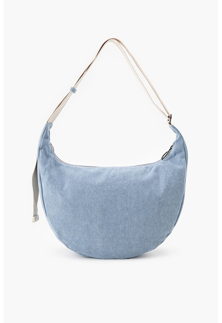Caracteristici Culoare: albastru pal Material: bumbac Model: de umar Stil: casual Imprimeu: uni Barete: ajustabile Culoare elemente metalice: auriu Sistem inchidere: fermoar Detalii: logo brodat discret Compozitie Exterior: textile Dimensiuni Dimensiune (cm): 41x37x12