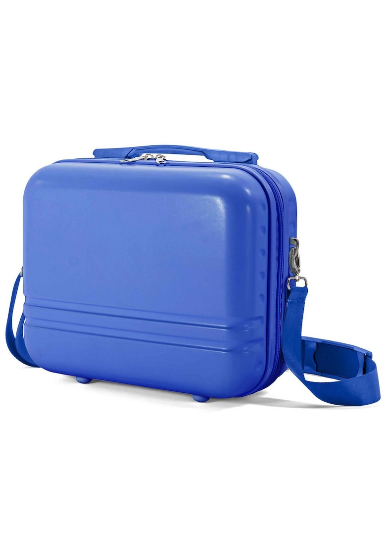 Caracteristici generale Tip produs: geanta cosmetice Culoare: albastru Tip: luxury Destinat pentru: voiaj Tip inchidere: fermoar Numar compartimente: 1 Caracteristici cheie: inchidere cu fermoar Continut pachet: curea pentru umar ajustabila si detasabila Compozitie Material exterior: abs Dimensiuni Lungime: 31 cm Adancime: 15 cm Inaltime: 26 cm