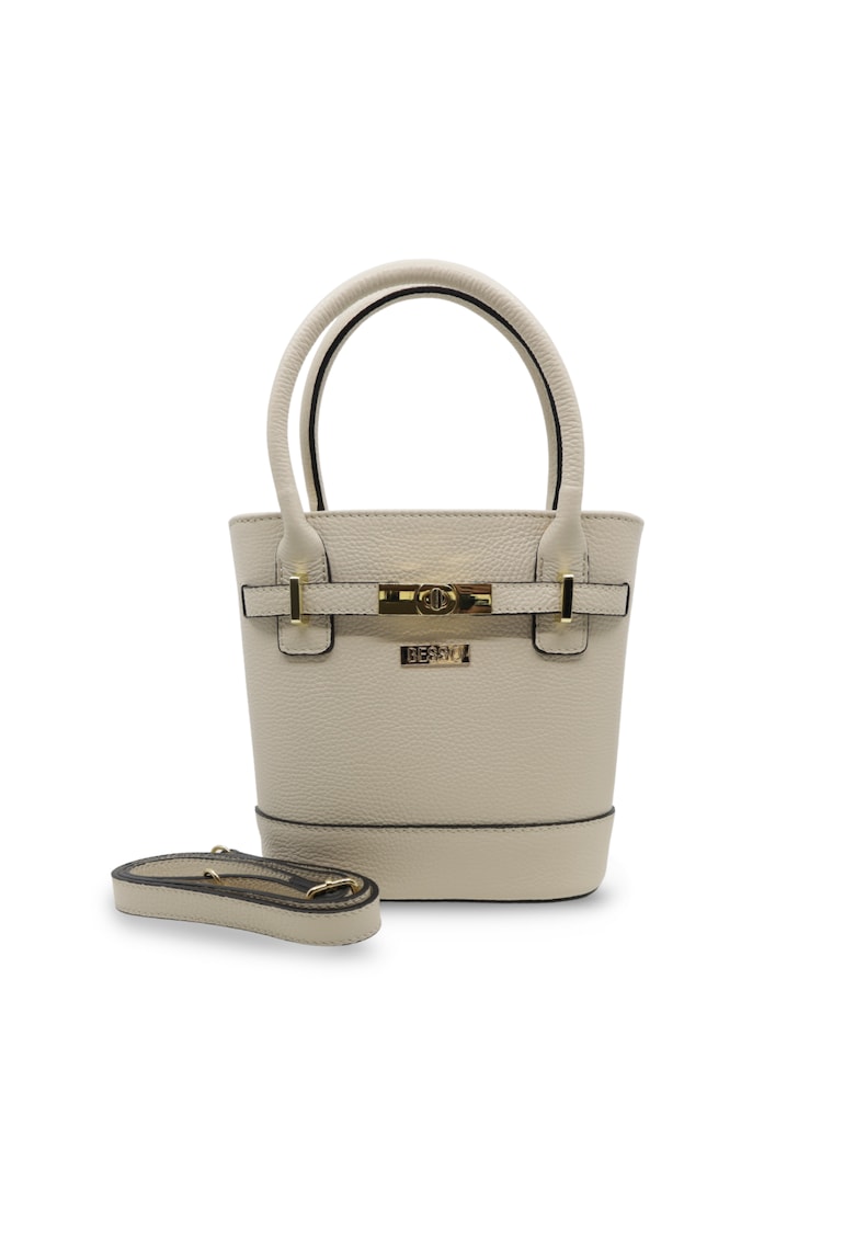 Caracteristici Culoare: ivoire Material: piele naturala Model: de mana Imprimeu: uni Maner: 2 fixe Barete: una ajustabila si detasabila Buzunare: unul interior cu fermoar Compartimente: 1 principal Culoare elemente metalice: auriu Sistem inchidere: fermoar Detalii: dust bag inclusa Compozitie Exterior: 100% piele naturala Captuseala: textil Dimensiuni Dimensiune (cm): 20x21x10 cm