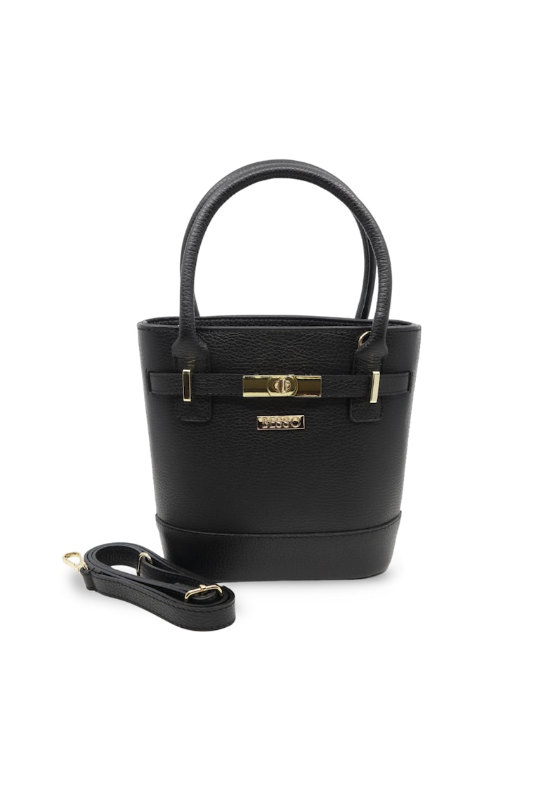 Caracteristici Culoare: negru Material: piele naturala Model: de mana Imprimeu: uni Maner: 2 fixe Barete: una ajustabila si detasabila Buzunare: unul interior cu fermoar Compartimente: 1 principal Culoare elemente metalice: auriu Sistem inchidere: fermoar Detalii: dust bag inclusa Compozitie Exterior: 100% piele naturala Captuseala: textil Dimensiuni Dimensiune (cm): 20x21x10 cm