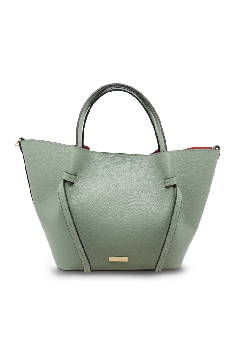 Caracteristici Culoare: verde menta Material: piele naturala Model: de mana Imprimeu: uni Maner: 2 fixe Barete: una ajustabila si detasabila Compartimente: unul principal Culoare elemente metalice: auriu Sistem inchidere: capse Detalii: portfard detasabil cu sistem de inchidere pe fermoar Compozitie Exterior: 100% piele veritabila Dimensiuni Dimensiune (cm): 24x40x16