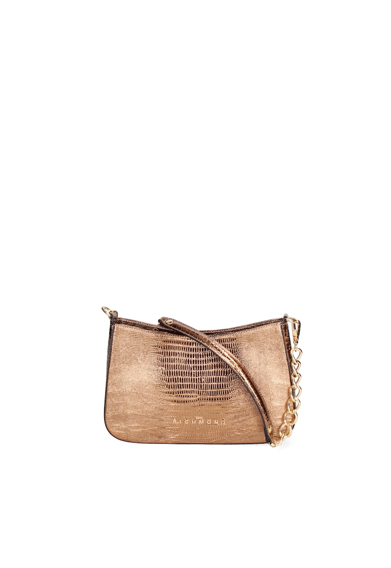 - bronz Material: piele naturala Model: de umar Stil: casual Imprimeu: uni Maner: unul Compartimente: 1 Culoare elemente metalice: auriu Sistem inchidere: fermoar Compozitie Exterior: piele Dimensiuni Dimensiune (cm): 16x28x7.5