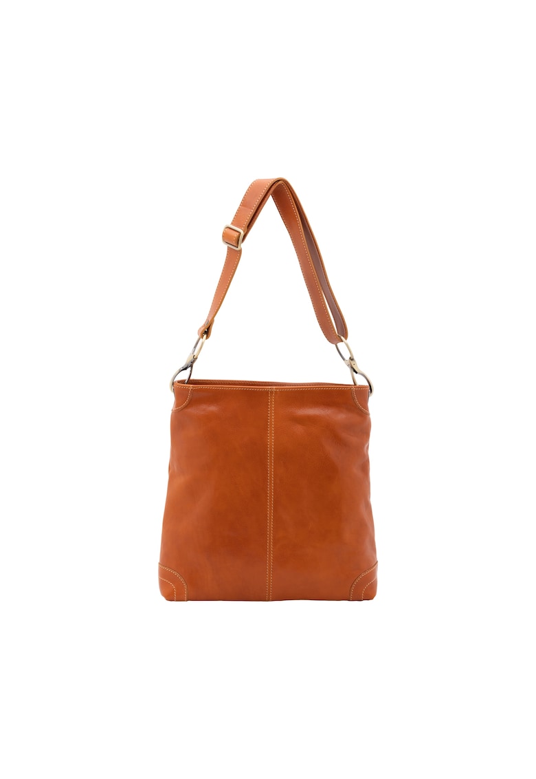 Caracteristici Culoare: maro cognac Material: piele naturala Model: de umar Stil: casual Imprimeu: uni Barete: ajustabile si detasabile Buzunare: interior Compartimente: un compartiment Culoare elemente metalice: auriu Sistem inchidere: fermoar Compozitie Exterior: 100% piele Captuseala: 100% bumbac Dimensiuni Dimensiune (cm): 32x32x11