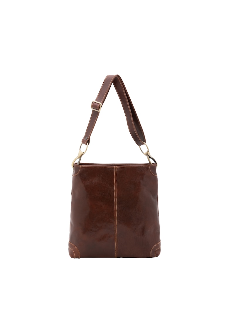 Caracteristici Culoare: maro Material: piele naturala Model: de umar Stil: casual Imprimeu: uni Barete: ajustabile si detasabile Buzunare: interior Compartimente: un compartiment Culoare elemente metalice: auriu Sistem inchidere: fermoar Compozitie Exterior: 100% piele Captuseala: 100% bumbac Dimensiuni Dimensiune (cm): 32x32x11