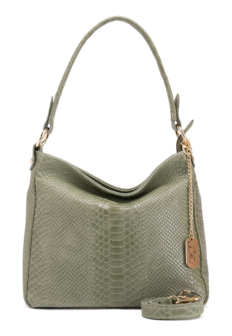 Caracteristici Culoare: verde sparanghel Material: piele naturala Model: de umar Stil: casual Imprimeu: cu model Maner: unul Barete: una Compartimente: 1 Culoare elemente metalice: auriu Sistem inchidere: fermoar Compozitie Exterior: piele Dimensiuni Dimensiune (cm): 24x29x8