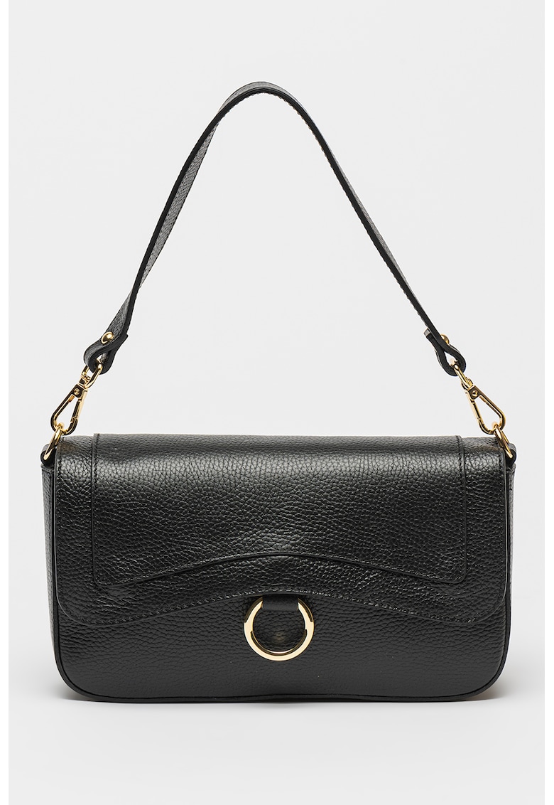 Caracteristici Culoare: negru Material: piele naturala Model: de umar Stil: casual Imprimeu: uni Maner: detasabil Barete: ajustabile si detasabile Buzunare: interior Compartimente: un compartiment Culoare elemente metalice: auriu Sistem inchidere: fermoar