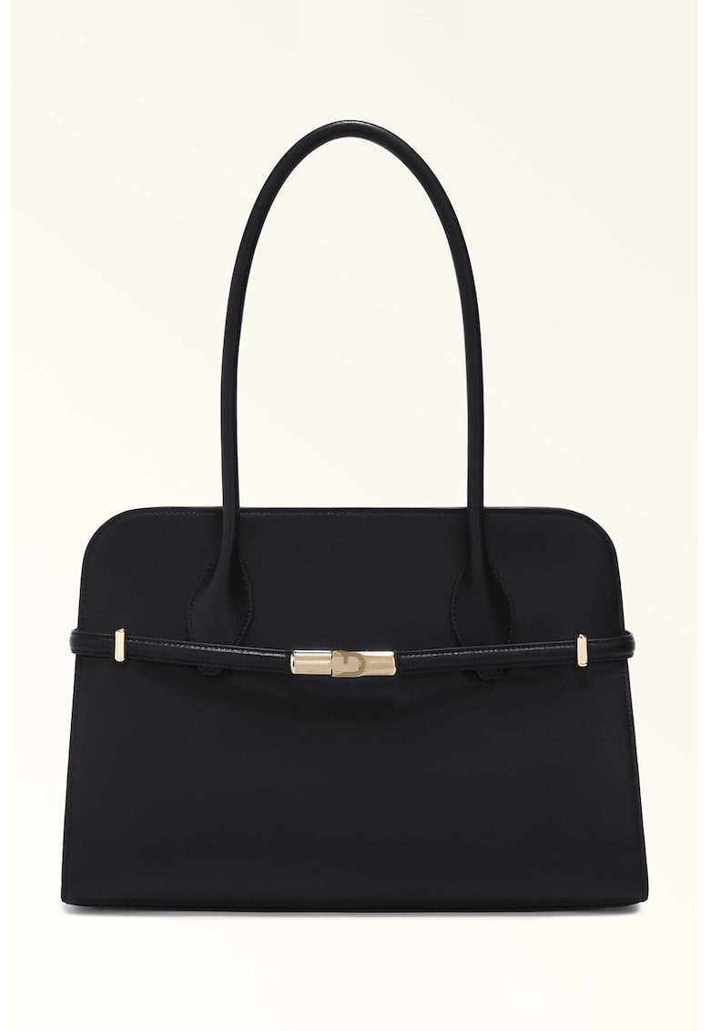 Caracteristici Culoare: negru Material: piele naturala Model: de umar Stil: casual Imprimeu: uni Maner: doua Buzunare: cu fermoar Compartimente: 1 Culoare elemente metalice: auriu Sistem inchidere: fermoar Compozitie Exterior: 100% piele Dimensiuni Dimensiune (cm): 20.5x38x15.5