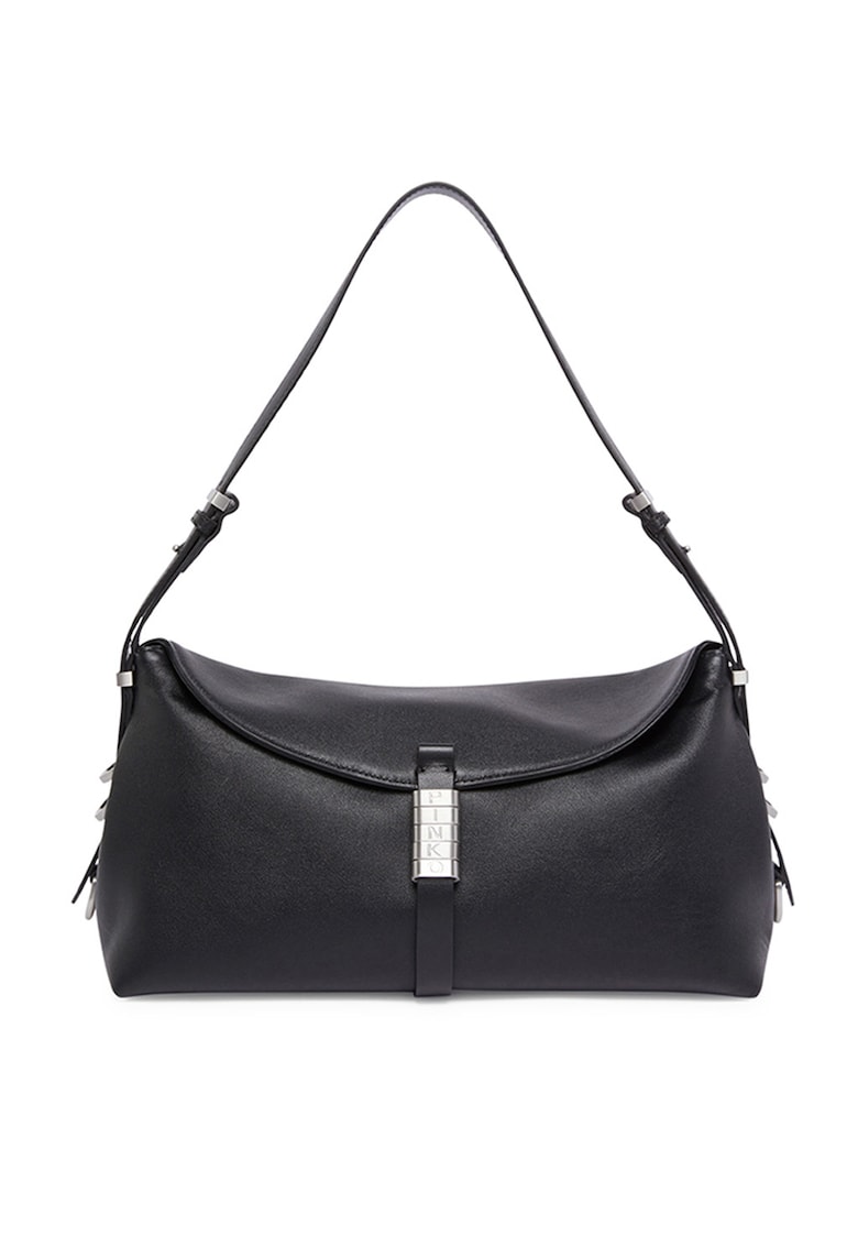 Caracteristici Culoare: negru Material: piele naturala Model: de umar Stil: casual Imprimeu: logo Compartimente: 1 principal Culoare elemente metalice: argintiu Sistem inchidere: fermoar Compozitie Exterior: 100% piele veritabila Captuseala: 100% bumbac Dimensiuni Dimensiune (cm): 17x24x12