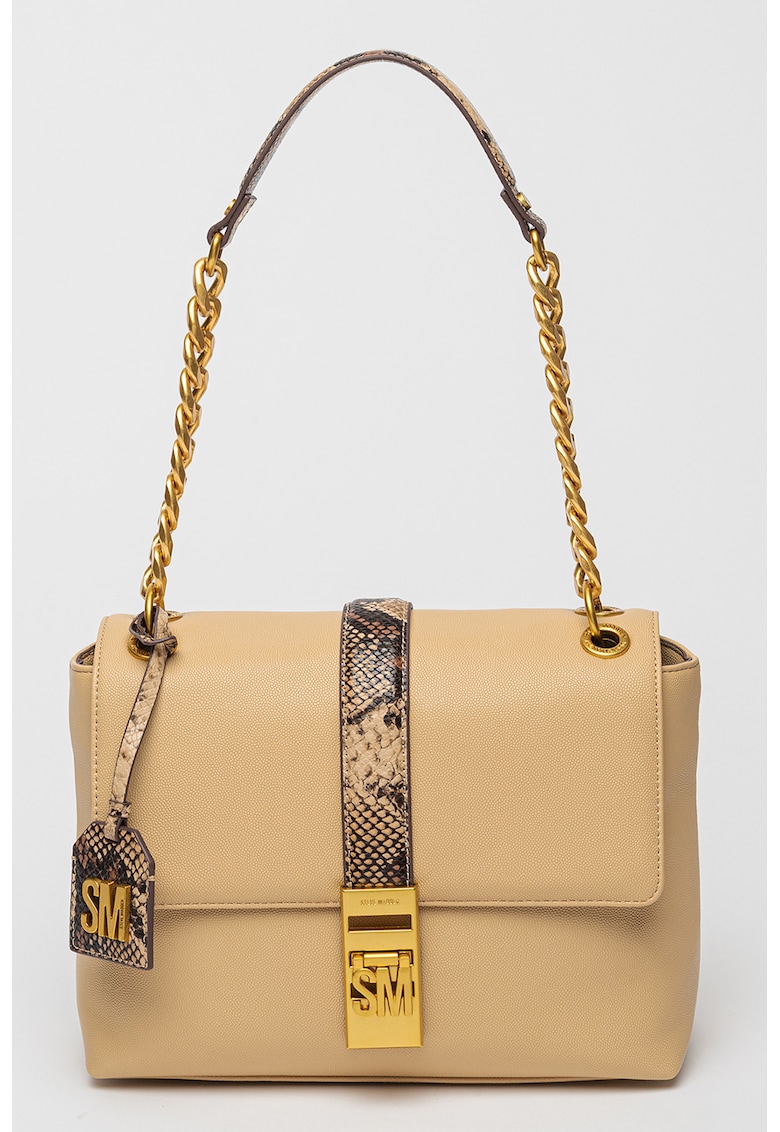 Caracteristici Culoare: camel Material: piele ecologica Model: de umar Stil: casual Imprimeu: logo Maner: 1 fix din lant Barete: 1 ajustabila si detasabila Buzunare: 1 interior