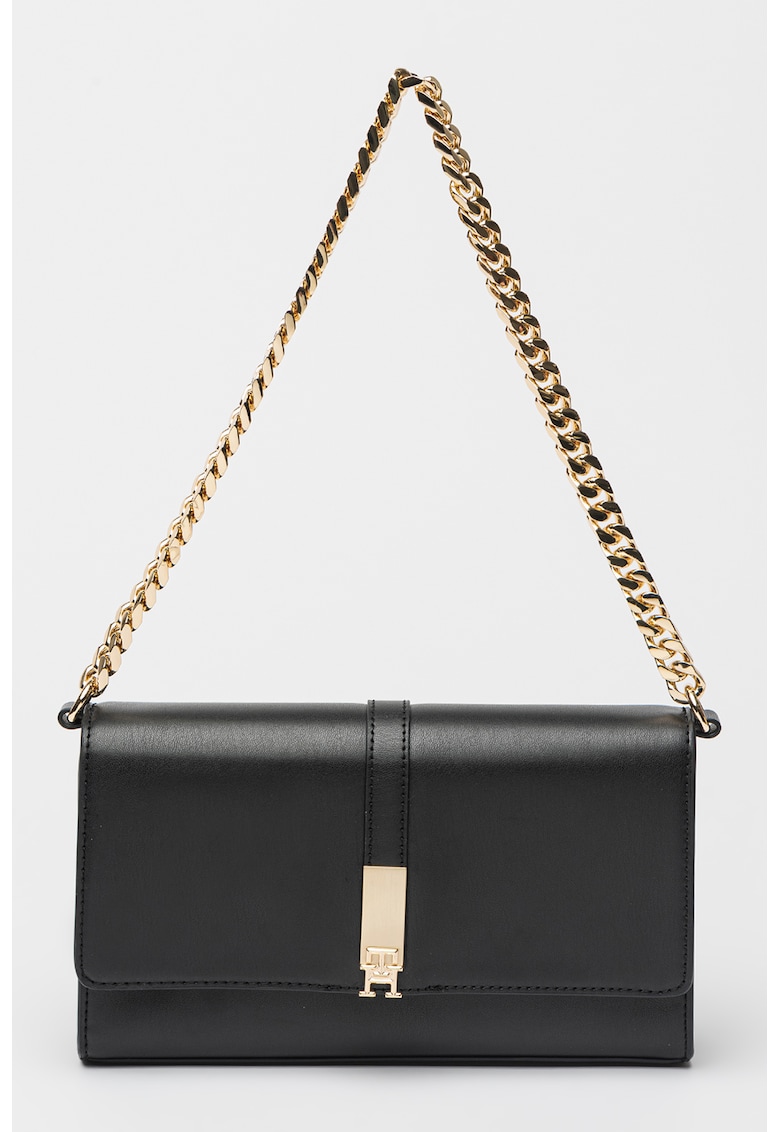 Caracteristici Culoare: negru Material: piele ecologica Model: de umar Stil: casual Imprimeu: uni Maner: lant Barete: ajustabila Compartimente: 2 Culoare elemente metalice: auriu Sistem inchidere: sistem metalic