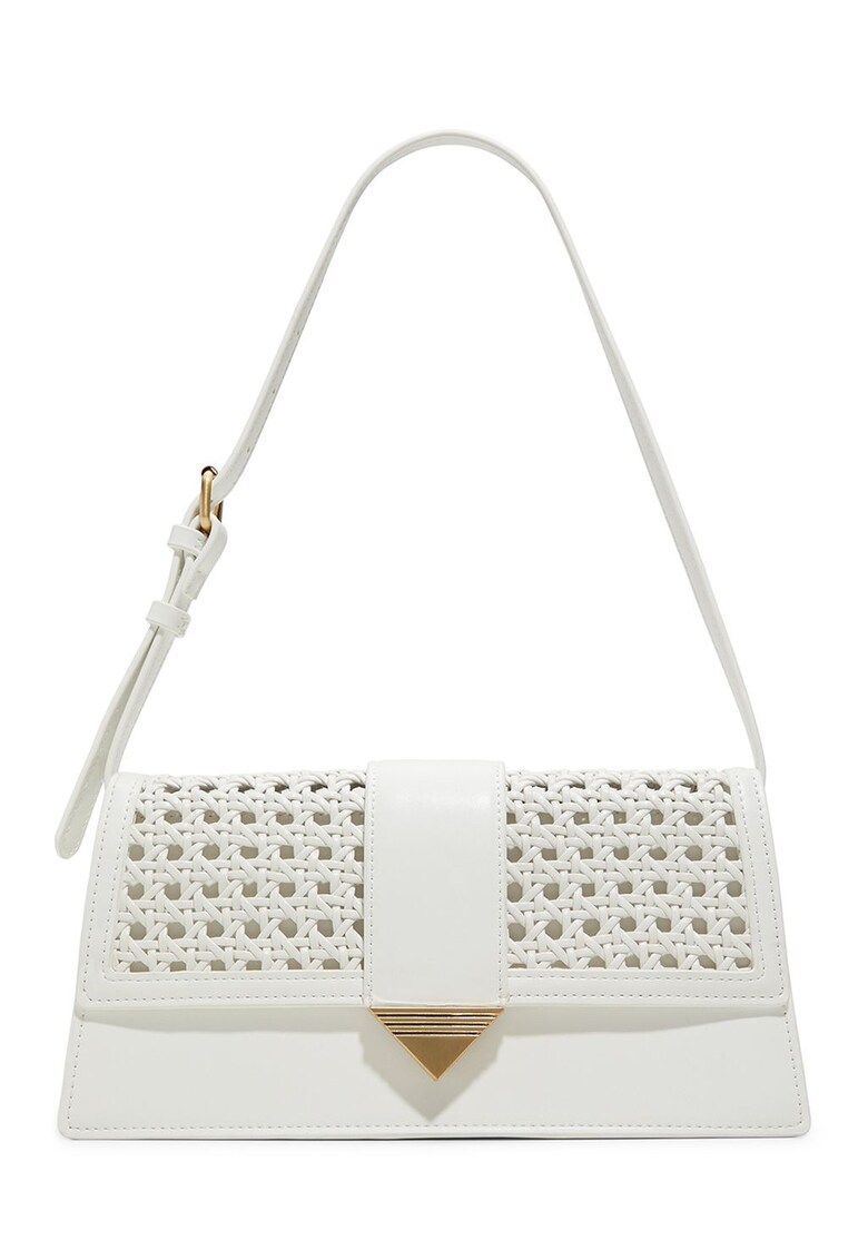 Caracteristici Culoare: alb optic Material: piele ecologica Model: de umar Stil: casual Imprimeu: uni Maner: 1 ajustabil Compartimente: 1 principal Culoare elemente metalice: auriu Sistem inchidere: capse magnetice Compozitie Exterior: 100% poliuretan Captuseala: 100% poliester Dimensiuni Dimensiune (cm): 15 x 28 x 5 cm