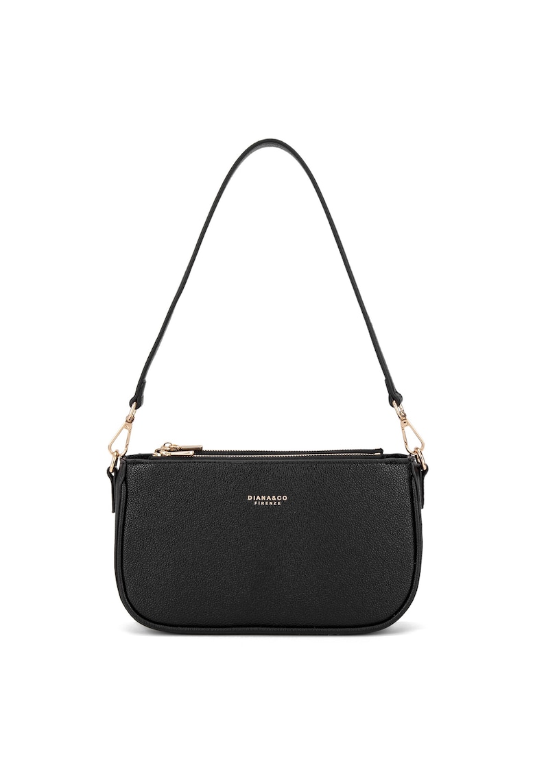 Caracteristici Culoare: negru Material: piele ecologica Model: de umar Stil: casual Imprimeu: uni Maner: detasabil Barete: detasabile Buzunare: interioare Compartimente: trei Culoare elemente metalice: auriu Sistem inchidere: fermoar Detalii: detaliu cu logo Compozitie Exterior: 100% poliuretan Dimensiuni Dimensiune (cm): 14x24x5.5