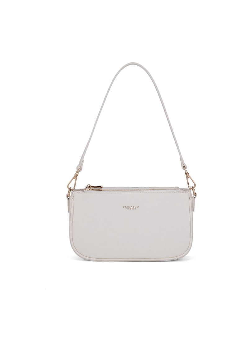 Caracteristici Culoare: alb Material: piele ecologica Model: de umar Stil: casual Imprimeu: uni Maner: detasabil Barete: detasabile Buzunare: interioare Compartimente: trei Culoare elemente metalice: auriu Sistem inchidere: fermoar Detalii: detaliu cu logo Compozitie Exterior: 100% poliuretan Dimensiuni Dimensiune (cm): 14x24x5.5