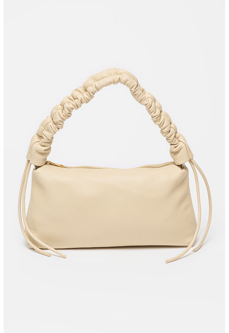 Caracteristici Culoare: bej deschis Material: piele ecologica Model: de mana Stil: casual Maner: unul Barete: una Compartimente: 1 Culoare elemente metalice: auriu Sistem inchidere: fermoar Compozitie Exterior: poliuretan Captuseala: poliester Dimensiuni Dimensiune (cm): 15x28x7