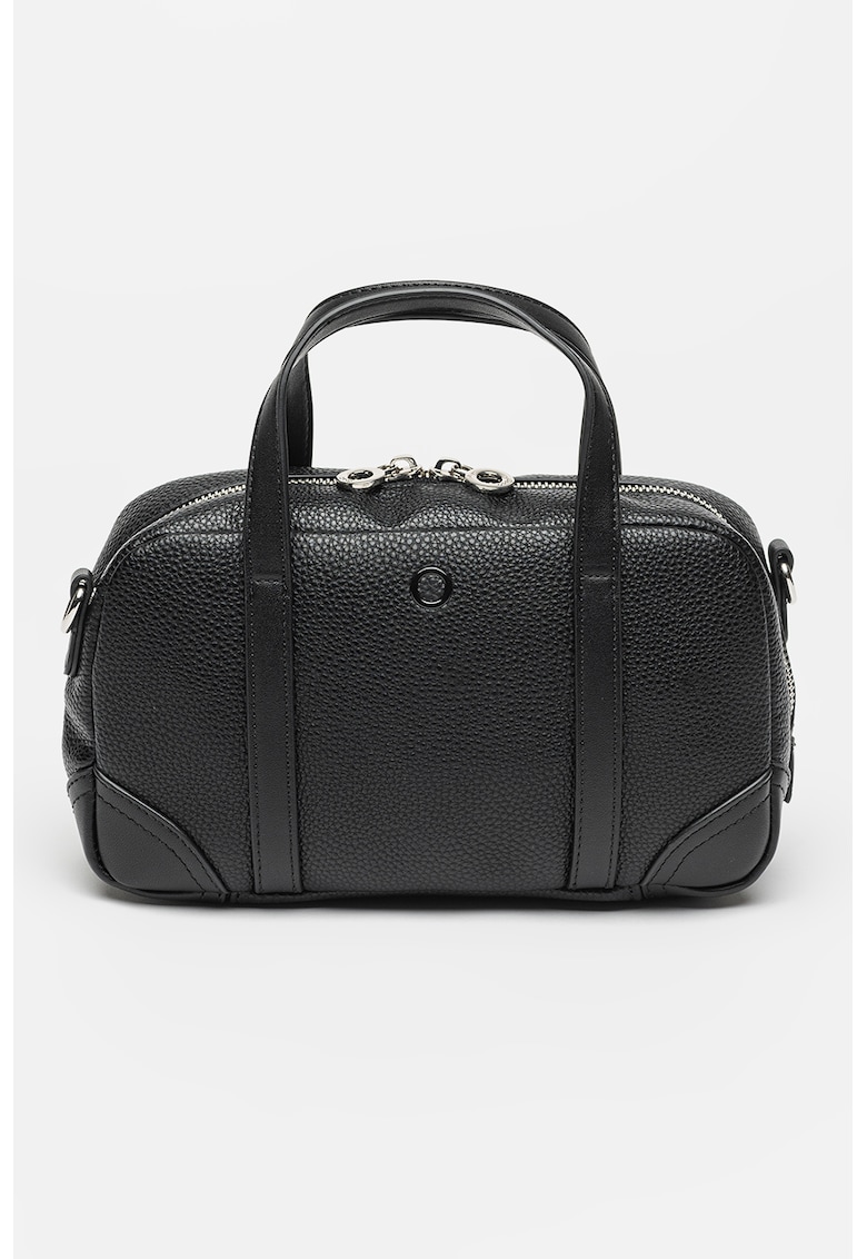 Caracteristici Culoare: negru Material: piele ecologica Model: de umar Stil: casual Compartimente: 1 Culoare elemente metalice: argintiu Sistem inchidere: fermoar Compozitie Exterior: 65% poliuretan