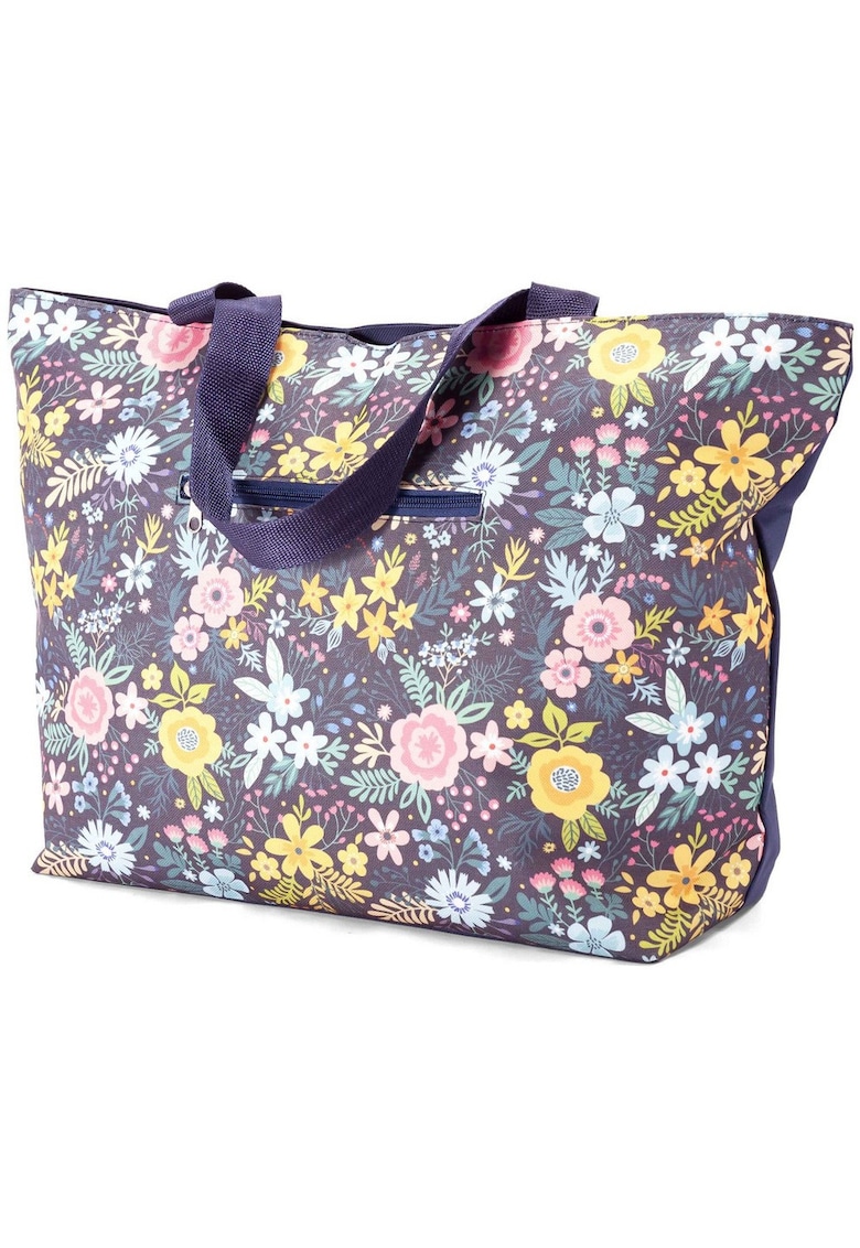 Caracteristici generale Tip produs: geanta Culoare: bleumarin Imprimeu: cu model Numar compartimente: 1 Sistem inchidere: fermoar Caracteristici cheie: buzunar interior Continut pachet: 1 x geanta de plaja Instructiuni ingrijire: spalare manuala Detalii material Exterior: poliester Captuseala: textil Material bareta: poliester Partea superioara: poliester Dimensiuni Inaltime: 34 cm Lungime: 51 cm Latime: 15 cm