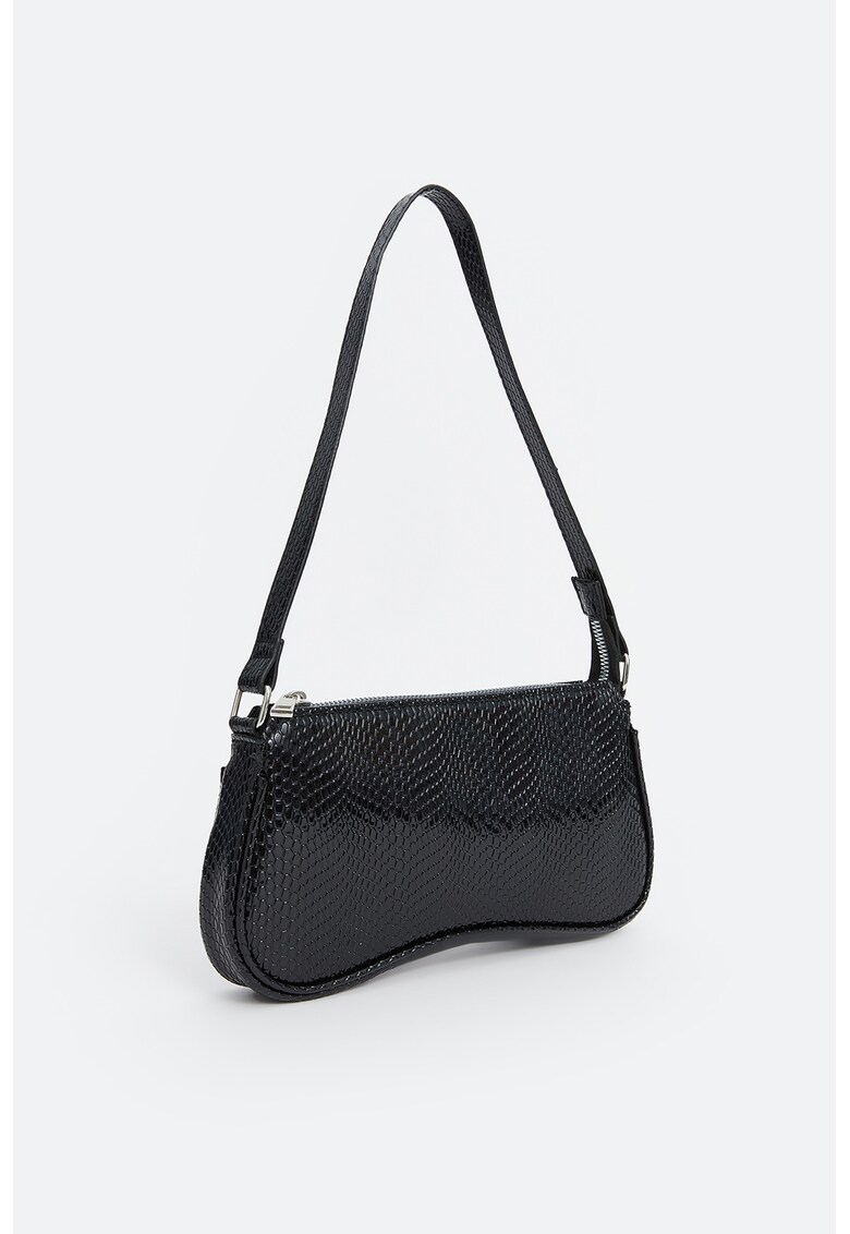 Caracteristici Culoare: negru Material: poliester Model: de umar Stil: casual Compartimente: 1 Culoare elemente metalice: argintiu Sistem inchidere: fermoar Compozitie Exterior: 100% poliester cu 100% pelicula de policlorura de vinil Dimensiuni Dimensiune (cm): universal