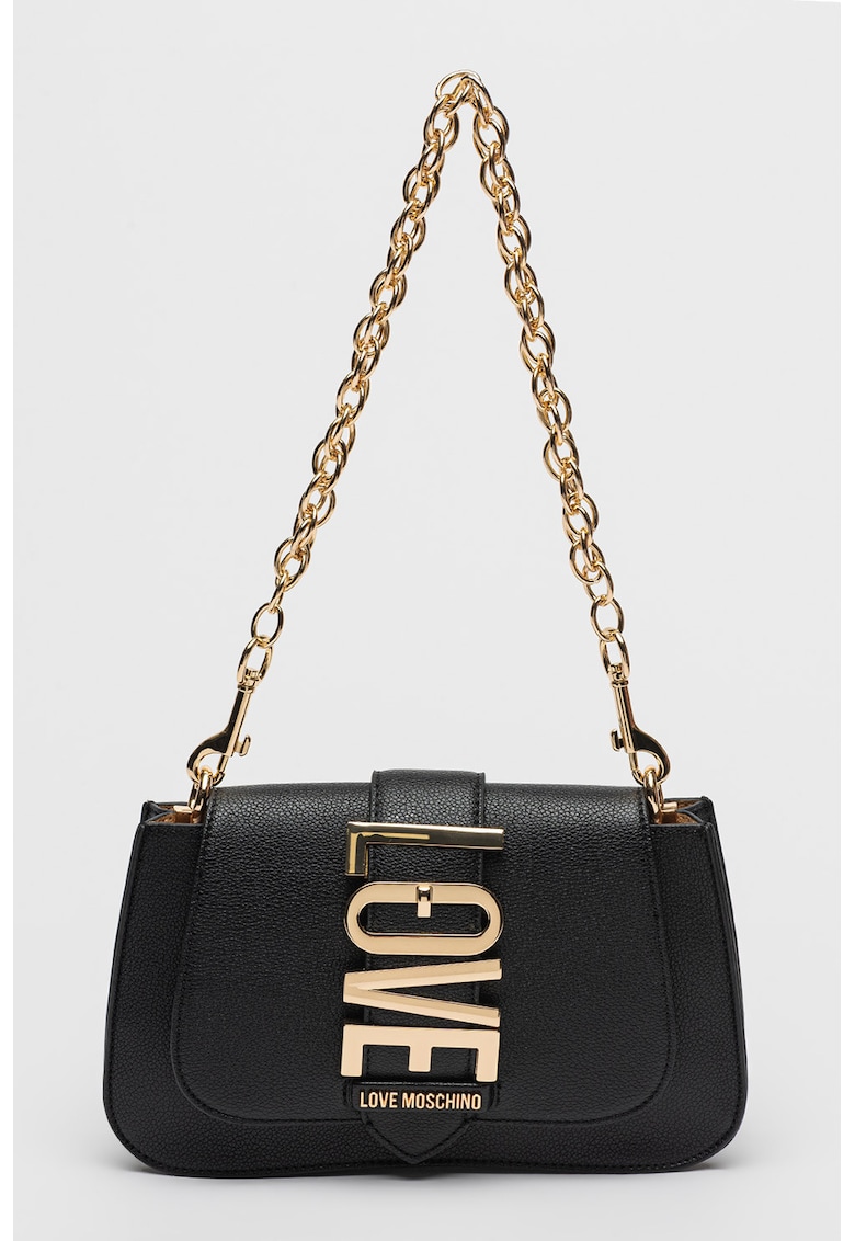 Caracteristici Culoare: negru Material: piele ecologica Model: de umar Stil: casual Imprimeu: logo Maner: 1 fix din lant Barete: 1 ajustabila si detasabila Compartimente: 1 Culoare elemente metalice: auriu Sistem inchidere: clapeta Compozitie Exterior: 100% poliuretan Captuseala: 100% poliester Dimensiuni Dimensiune (cm): 15 x 25.5 x 6 cm