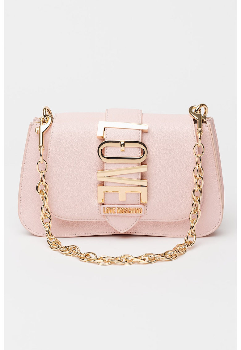 Caracteristici Culoare: roz deschis Material: piele ecologica Model: de umar Stil: casual Imprimeu: logo Maner: 1 fix din lant Barete: 1 ajustabila si detasabila Compartimente: 1 Culoare elemente metalice: auriu Sistem inchidere: clapeta Compozitie Exterior: 100% poliuretan Captuseala: 100% poliester Dimensiuni Dimensiune (cm): 15 x 25.5 x 6 cm