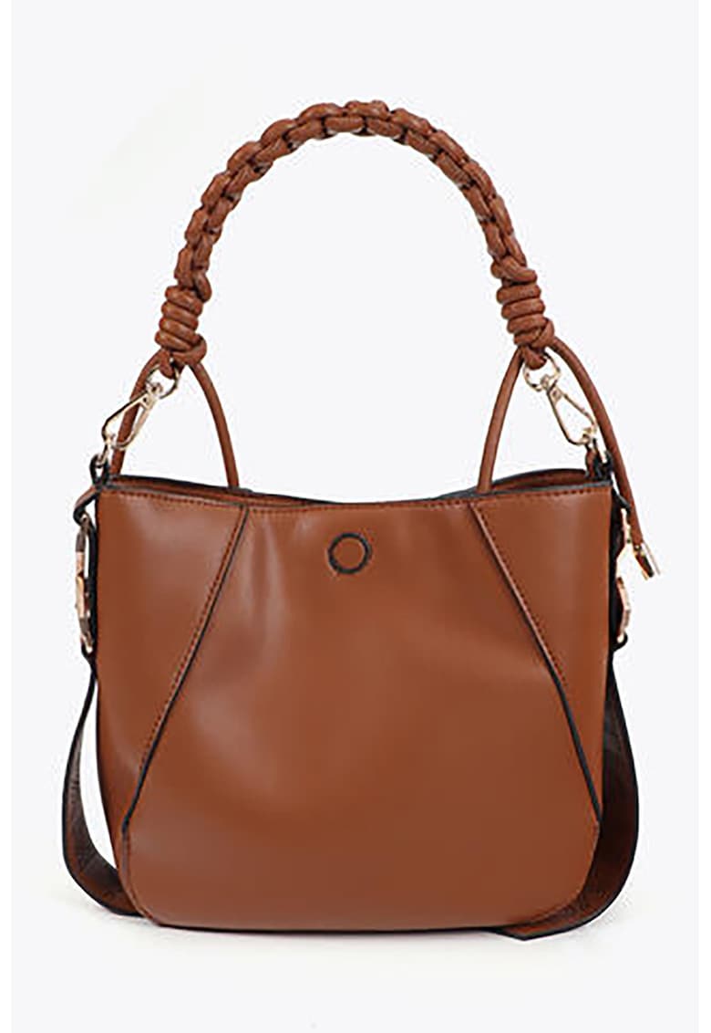 Caracteristici Culoare: maro scortisoara Material: piele ecologica Model: de umar Stil: casual Imprimeu: uni Barete: impletita
