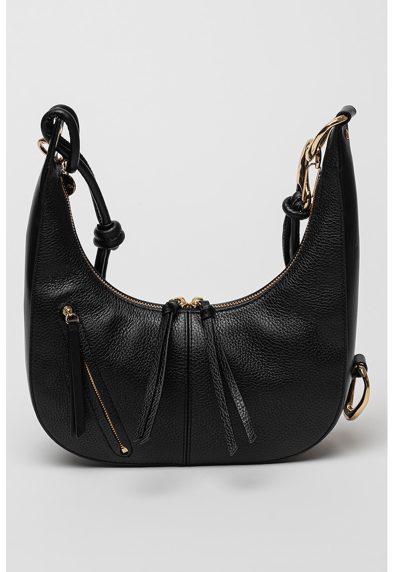 Caracteristici Culoare: negru Material: piele naturala Model: de umar Stil: casual Imprimeu: uni Barete: ajustabile Compartimente: 1 compatiment principal Culoare elemente metalice: auriu Sistem inchidere: fermoar Compozitie Exterior: 100% piele Dimensiuni Dimensiune (cm): 16x35x8
