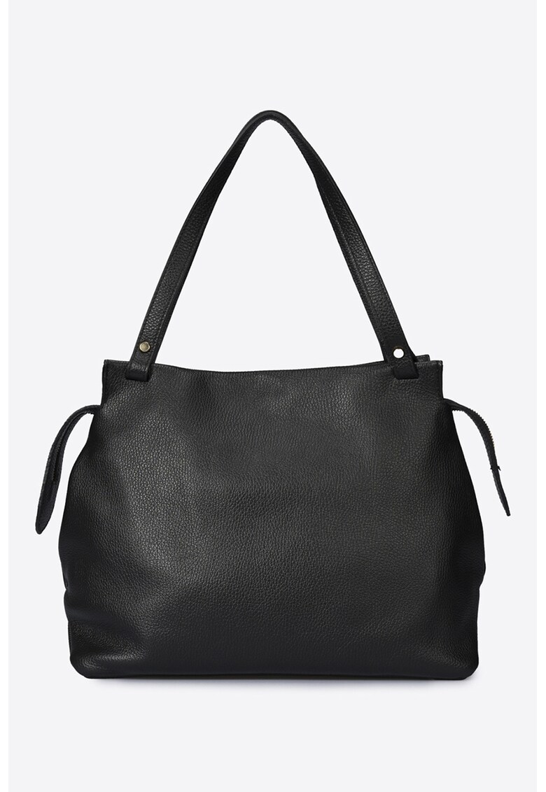 Caracteristici Culoare: negru Material: piele naturala Model: de umar Stil: casual Imprimeu: uni Maner: 2 fixe Compartimente: 1 principal Culoare elemente metalice: auriu Sistem inchidere: fermoar Compozitie Exterior: 100% piele naturala Dimensiuni Dimensiune (cm): 28x36x15