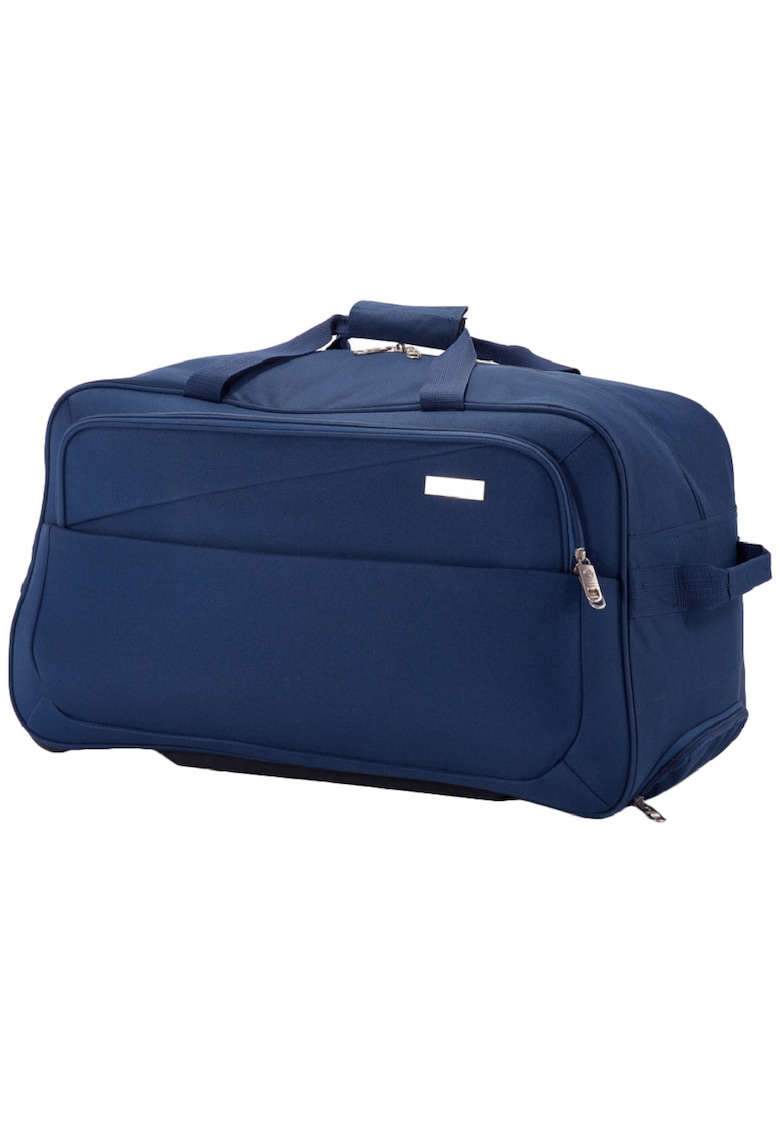 Caracteristici Tip: cu roti Culoare: bleumarin Material: poliester Sistem inchidere: fermoar Stil: sport Tip compartimente: 1 x buzunar frontal