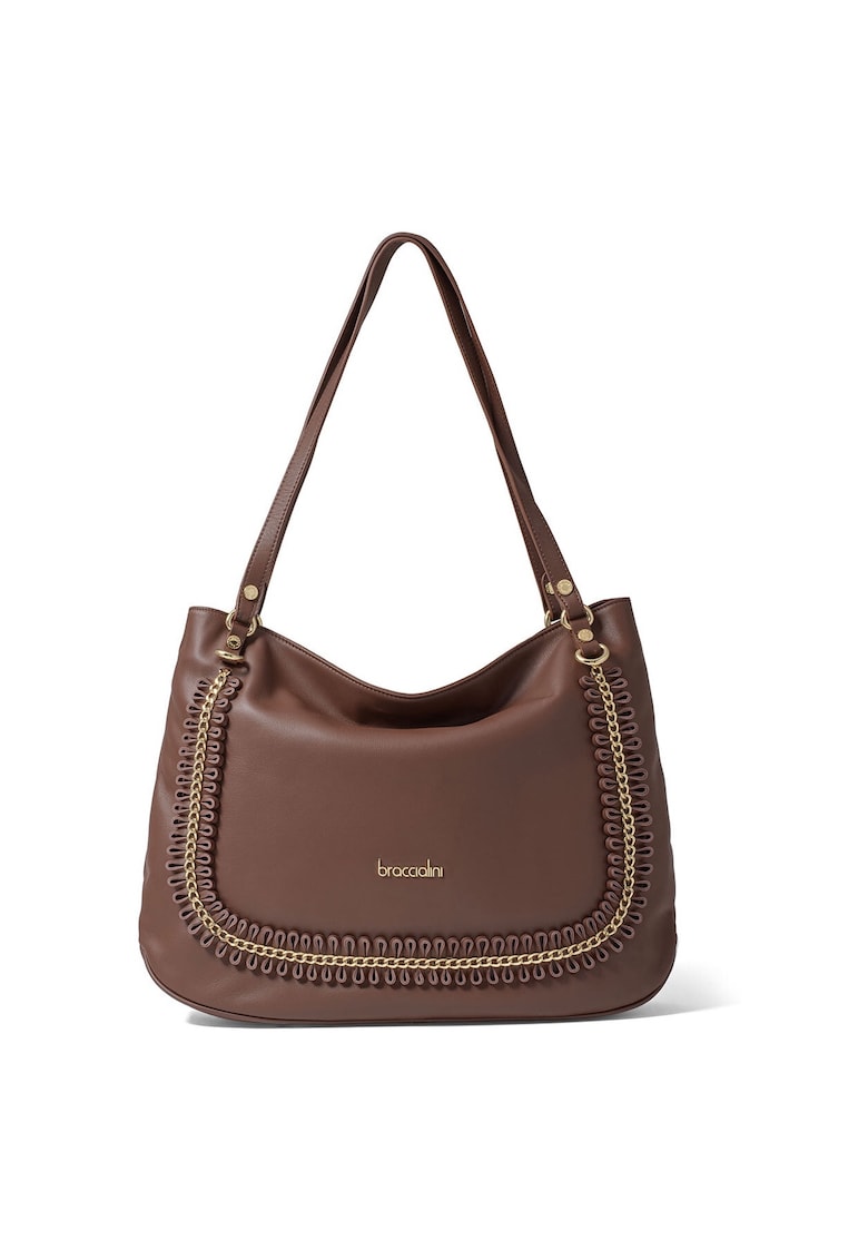 Caracteristici Culoare: maro Material: piele naturala Model: de umar Stil: casual Maner: 2 fixe Buzunare: interior Compartimente: un compartiment Culoare elemente metalice: auriu Sistem inchidere: fermoar Compozitie Exterior: piele Captuseala: textil Dimensiuni Dimensiune (cm): 32x42.5x14