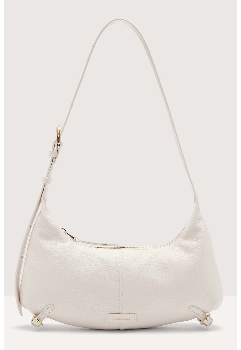 Caracteristici Culoare: alb Material: piele naturala Model: de umar Stil: casual Imprimeu: uni Maner: ajustabile Compartimente: 1 compatiment principal Culoare elemente metalice: auriu Sistem inchidere: fermoar Compozitie Exterior: 100% piele veritabila Dimensiuni Dimensiune (cm): 17x35x3