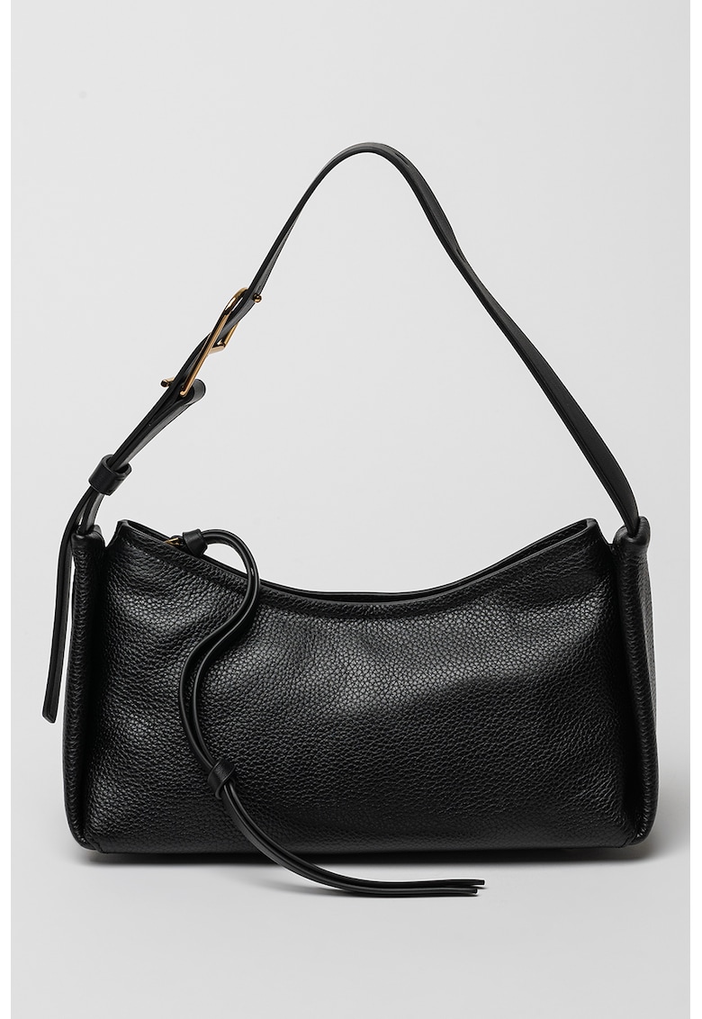Caracteristici Culoare: negru Material: piele naturala Model: de umar Stil: casual Imprimeu: uni Barete: ajustabile Buzunare: interior Compartimente: 1 Culoare elemente metalice: auriu Sistem inchidere: fermoar Compozitie Exterior: 100% piele Dimensiuni Dimensiune (cm): 13x29x12