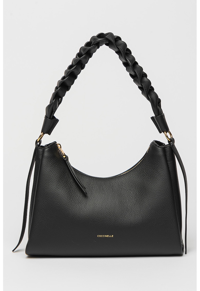 Caracteristici Culoare: negru stins Material: piele naturala Model: de umar Stil: casual Imprimeu: uni Compartimente: 1 Culoare elemente metalice: auriu Sistem inchidere: fermoar Compozitie Exterior: 100% piele Captuseala: 100% din bumbac Dimensiuni Dimensiune (cm): 15.5x30x10